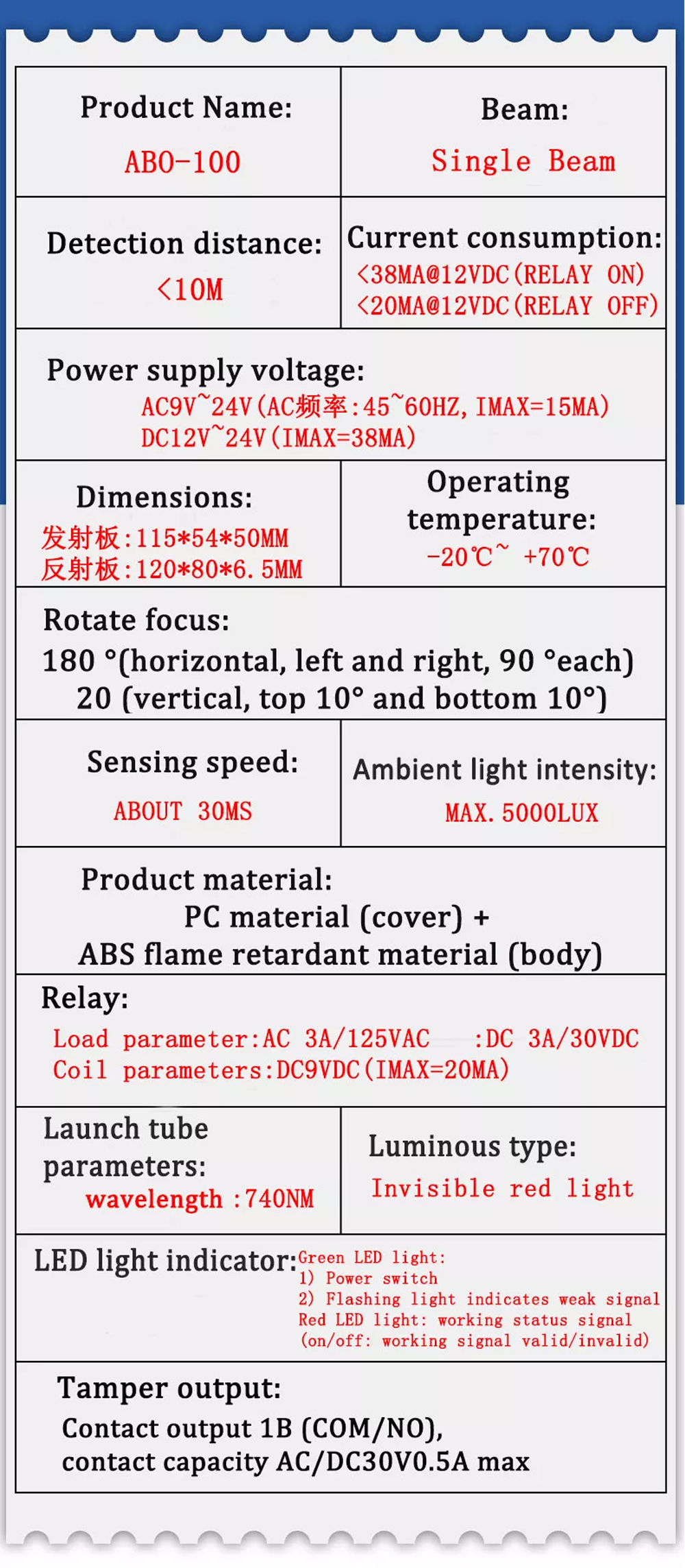 1). Operating Voltage: AC9V~24V (AC Frequency: 45~60HZ,Imax=15mA); DC12V~24V(Imax=38mA)